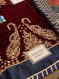 Indulge in pure winter luxury with the stunning Jazmine Velvet Collection 2024. Crafted from premium micron velvet, this elegant ensemble features exquisite embroidery, rich winter tones, and detailed sequin work—perfect for festive events, winter weddings, and formal gatherings.