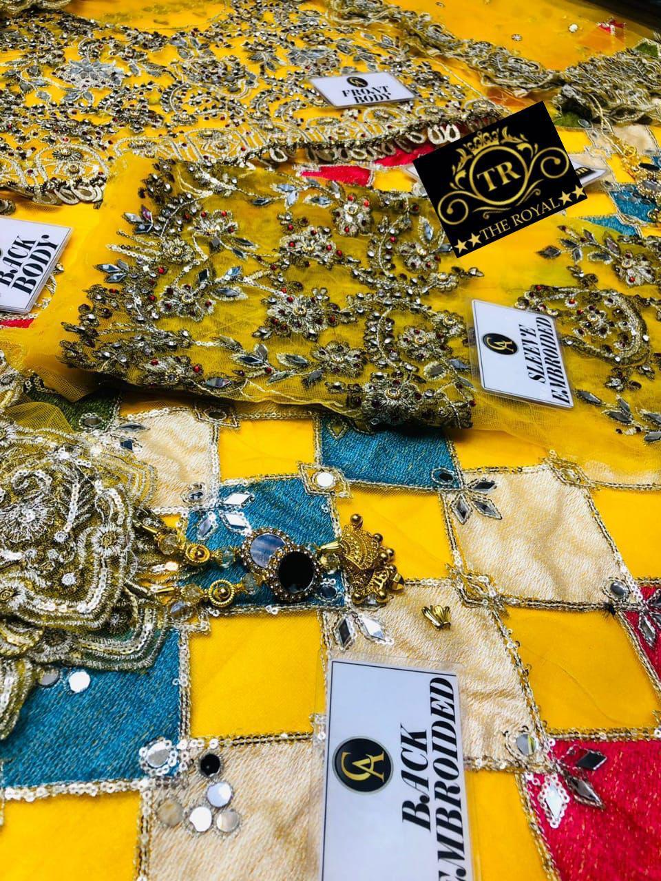 • Front net heavy embroidery adorned with stone handwork & mirror work