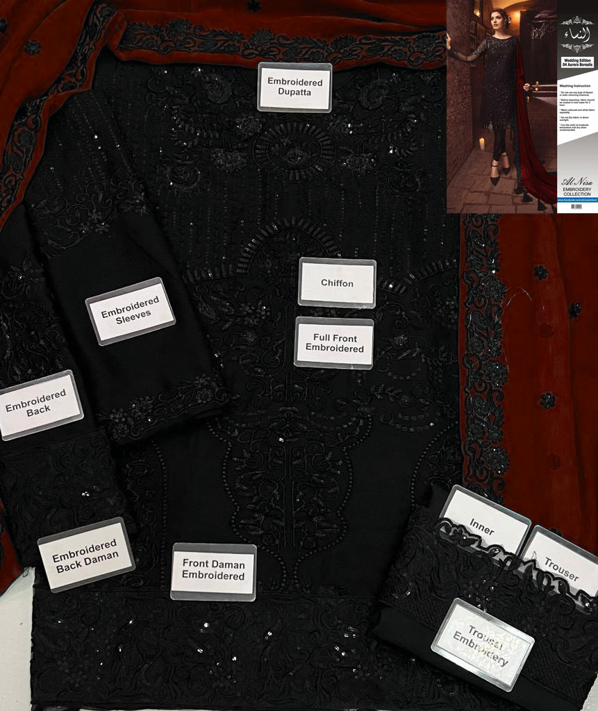 A soft, elegant chiffon outfit designed with delicate embroidery and a dreamy, graceful finish — perfect for formal events, parties, and festive gatherings.